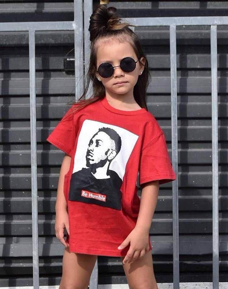 Kendrick Lamar kids t-shirt. From the Eastside to the Westside, we got you covered with our baby and kids hip hop clothing. Share your love of rap with the littlest peeps in your life. Designed in house, exclusive to Little Villains. The original kids hip hop tees since 2011.. Often imitated, never duplicated!